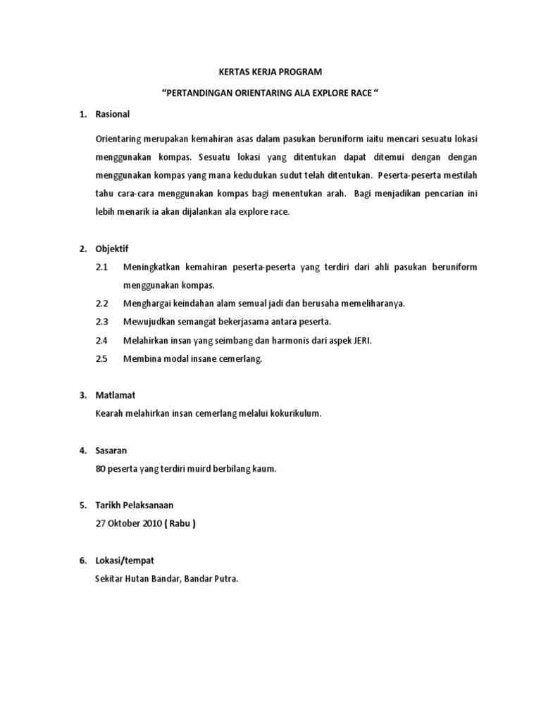 -Penggunaan VOT berdasarkan pekeliling yg lengkap. Kertas Kerja Kursus Kepimpinan Kokurikulum. Ini merupakan contoh kertas kerja untuk membuat program di universiti.